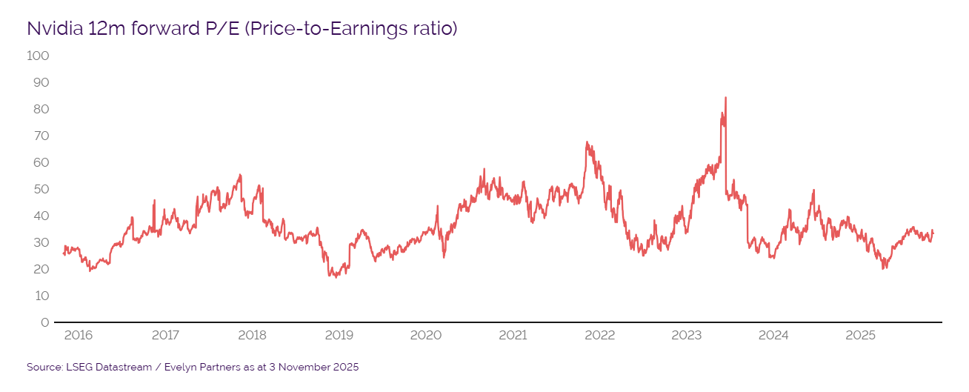 Investors will be paying particularly close attention to the valuation of Nvidia, a central player in the AI boom. It currently trades on 30 times earnings, which does not look especially high historically.9 To justify this premium, Nvidia will need to continue beating analysts’ earnings expectations. Nvidia is expected to report its latest earnings on 19 November.