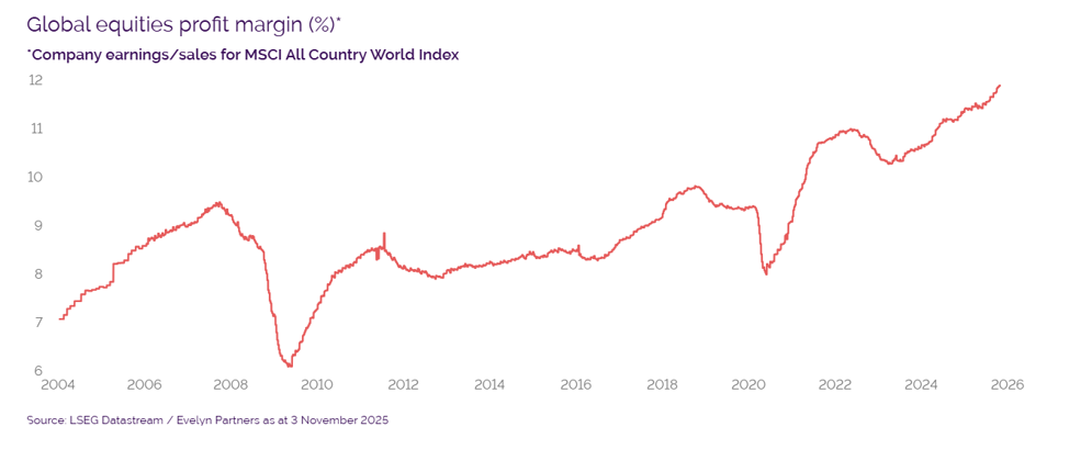 The Artificial Intelligence boom has driven global equity gains, though bubble concerns persist. Strong data use is boosting profit margins, and robust cash flows make the boom largely self-sustaining. Valuations remain below historical highs, but risks loom, including rising energy demand, geopolitical instability, and the complex nature of circular vendor financing.